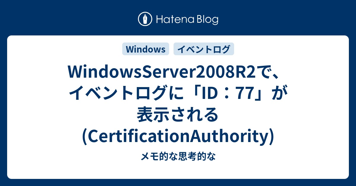 Windowsserver2008r2で イベントログに Id 77 が表示される Certificationauthority メモ的な思考的な