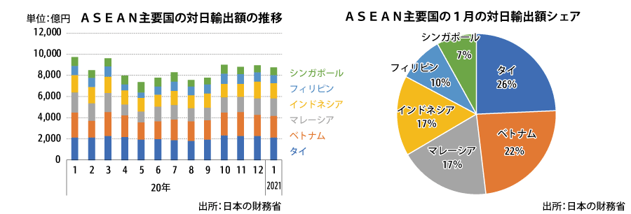 グラフでみるasean 対日貿易 1月 輸出額1割減 マイナス幅拡大 Nna Asia シンガポール マクロ 統計 その他経済