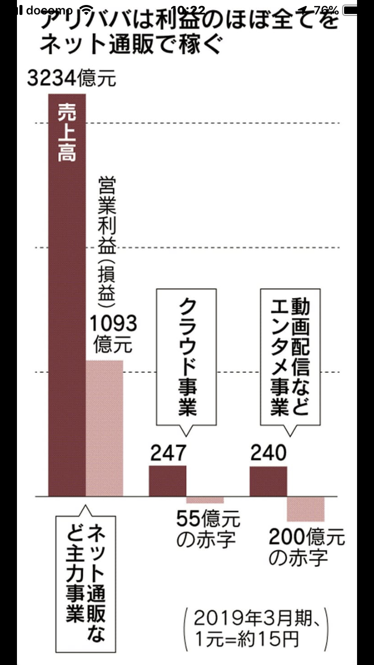 アリババの利益はネット通販依存 2019年4 6q 売上1149億元 1兆7235億円 営業利益243億元 3645億円 Knn Kandanewsnetwork 4knn Tv