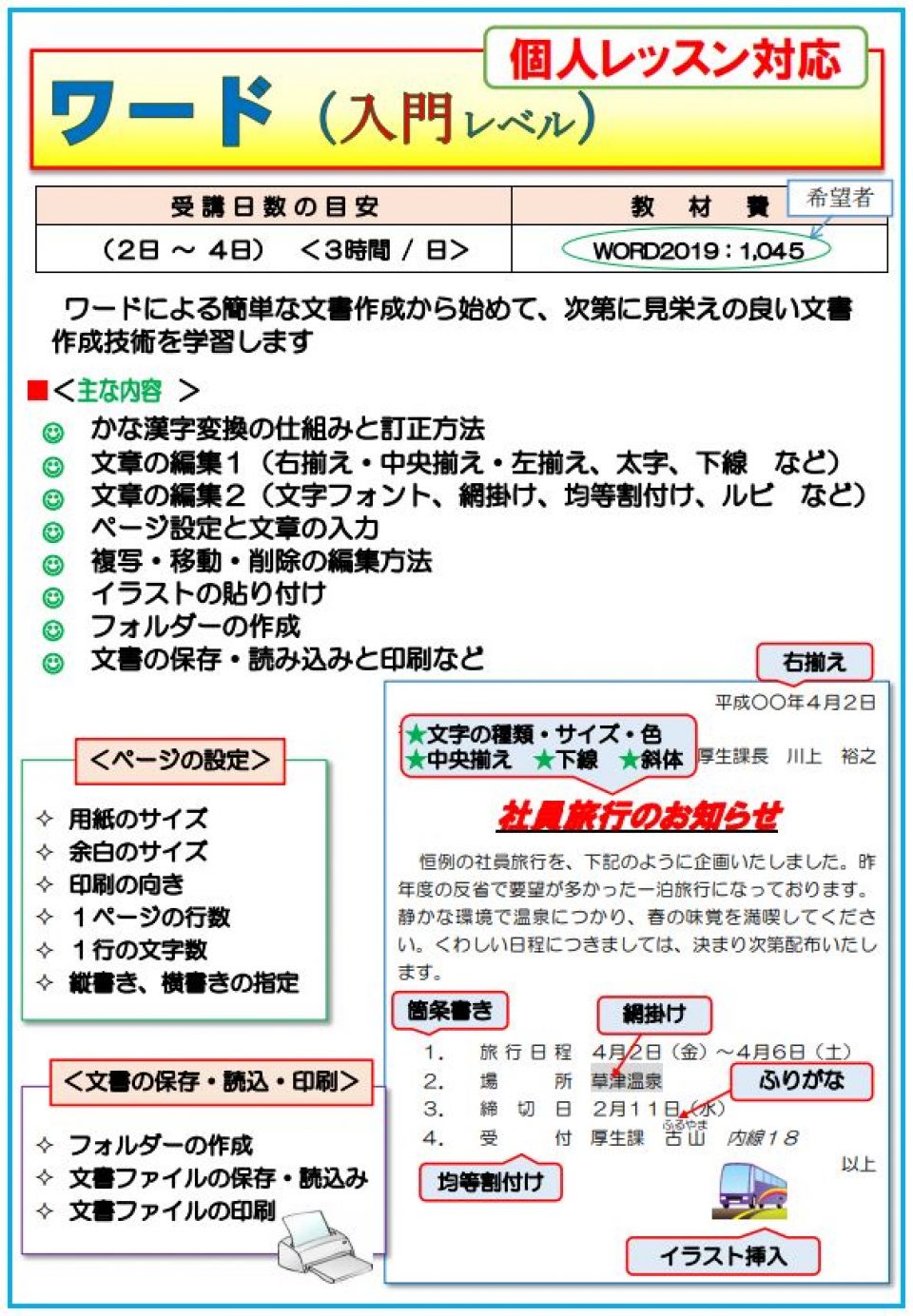 1日短期講習 速習 ワード エクセルの基本スキルをマスター