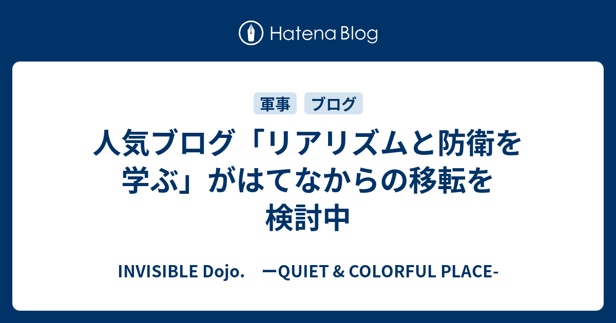 人気ブログ リアリズムと防衛を学ぶ がはてなからの移転を検討中 Invisible D ーquiet Colorful Place